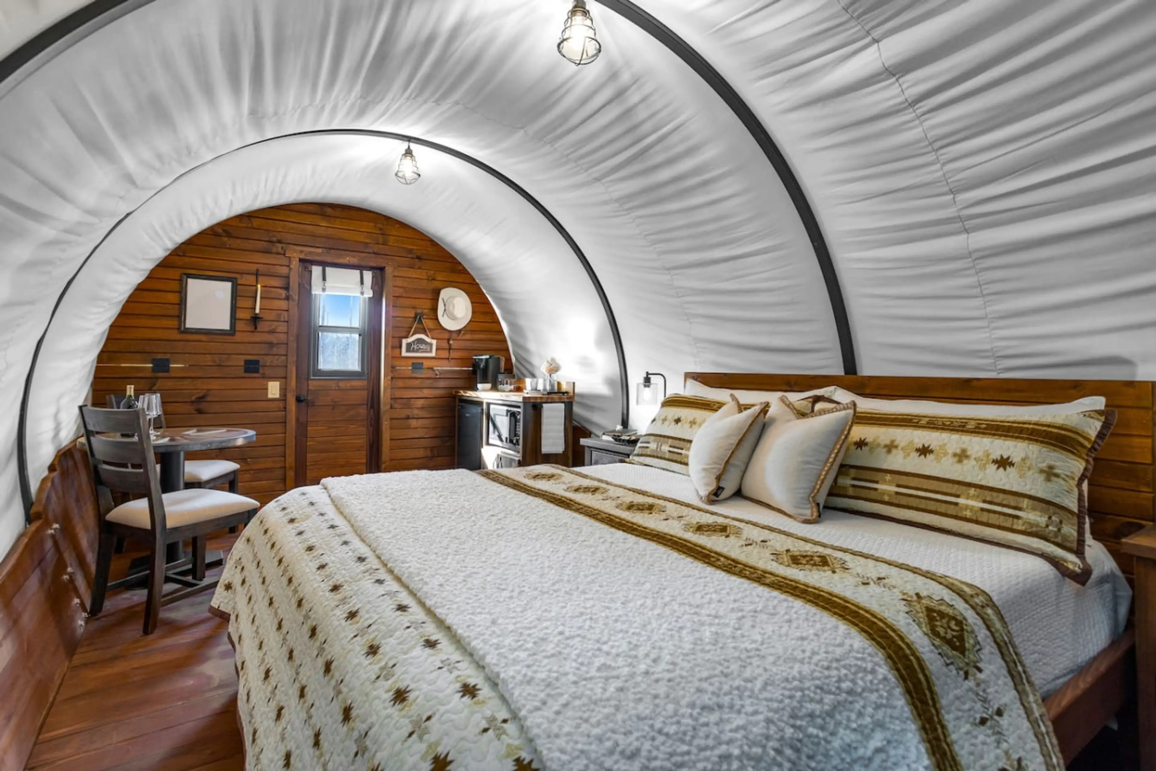 Escape to the Luxury Covered Wagon, Bluebonnet Belle, at Blue Pond Retreat! Nestled on a serene Texas property with a peaceful pond and a beautiful park-like country setting, our luxury glamping wagons offer the perfect blend of nature and comfort. Unwind in a beautifully designed space with a cozy ...